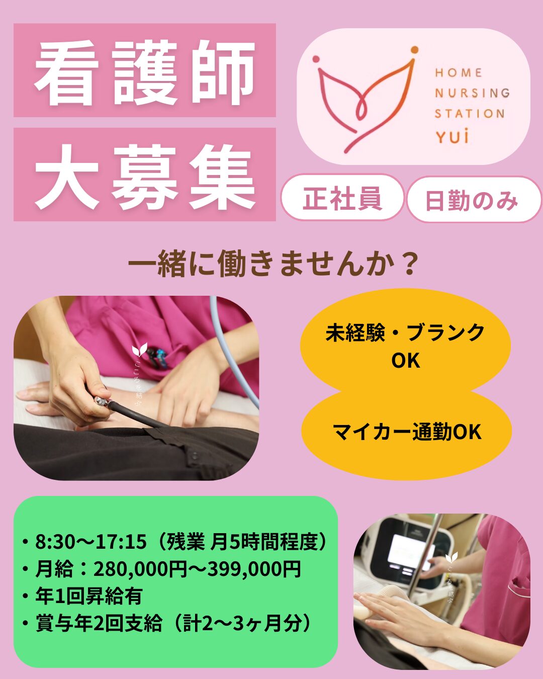 【訪問看護ステーション ゆい】京都市南区での訪問看護業務。未経験・ブランクOK。残業少なめでプライベートも充実☆