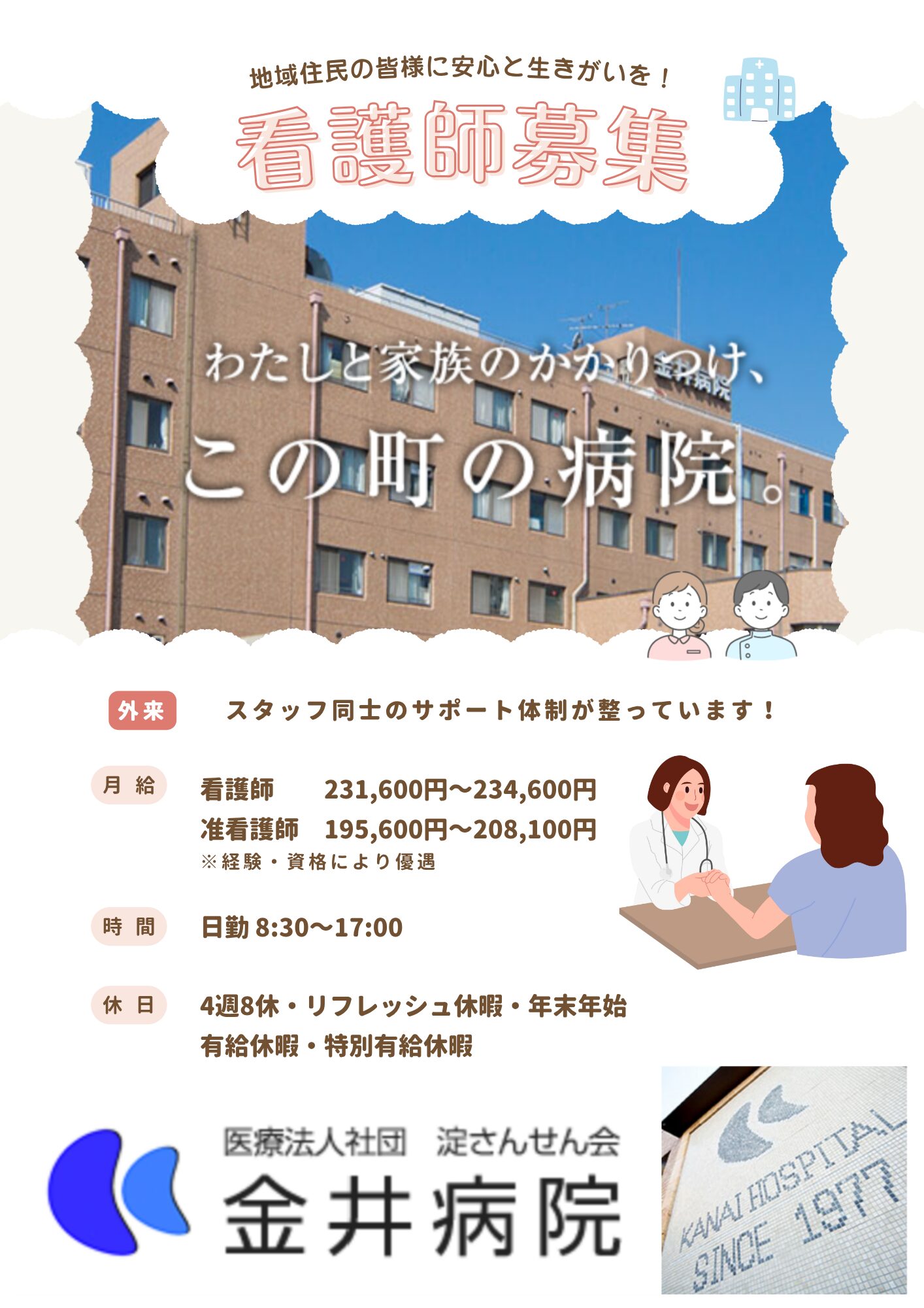 【金井病院】伏見区の総合病院における外来での看護師のお仕事です。